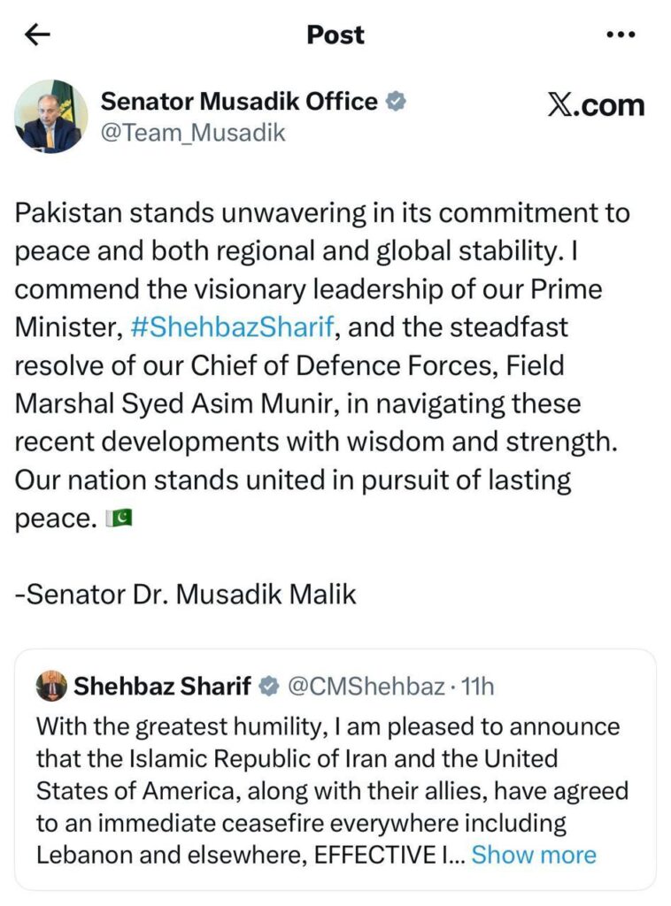 یہ بیان ایسے وقت میں سامنے آیا ہے ۔ جب پاکستان کی جانب سے ایران اور امرایکہ کے درمیان عارضی جنگ بندی معاہدہ میں اہم کردار ادا کیا گیا ہے۔