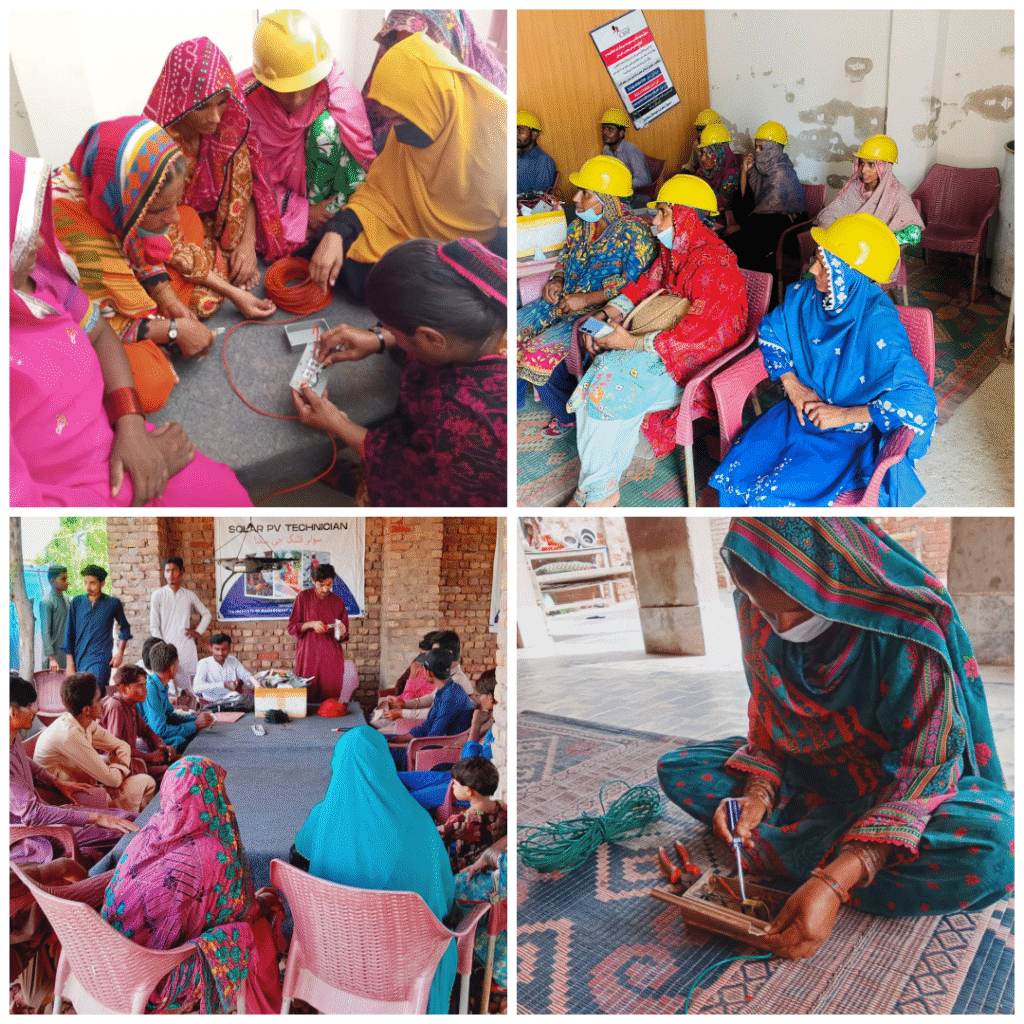 میرپورخاص ضلع میں سی ایس ایس پی نے 22 خواتین اور لڑکیوں کو سولر پی وی ٹیکنیشنز کے طور پر تربیت دی ہے تاکہ وہ تکنیکی اور کاروباری مہارتوں سے آراستہ ہو کر پائیدار روزگار اور چھوٹے پیمانے کے سولر کاروبار شروع کر سکیں۔”